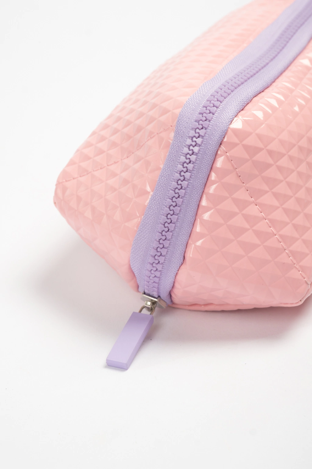 Organizador Shine con cureo PU brillante, con combinaciones contrastante con los cierres y el interior. Cierres diente de perro y tirador de goma. Al abrirse queda extendido y se puede ver todo el contenido interior. Bolsillo de red interno.